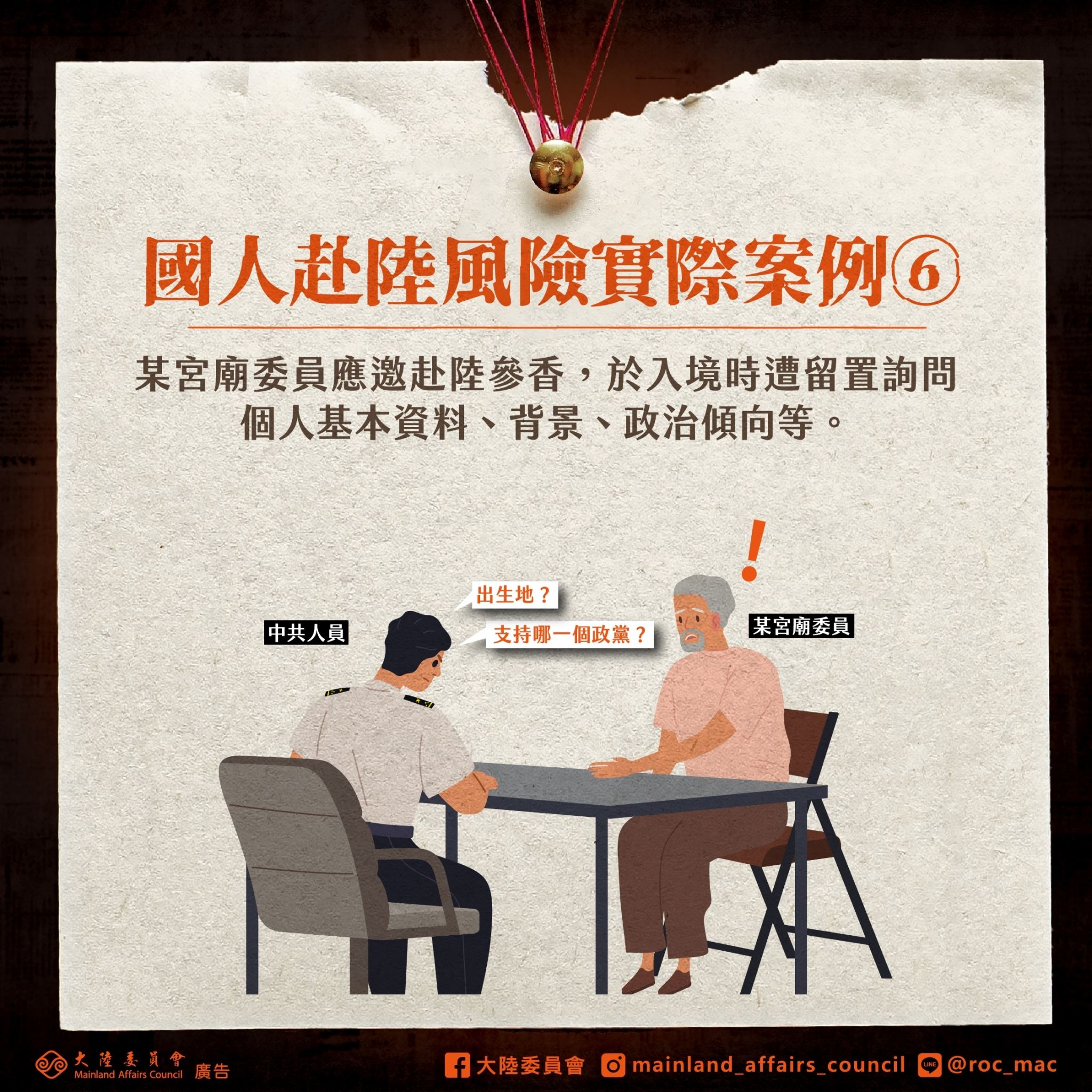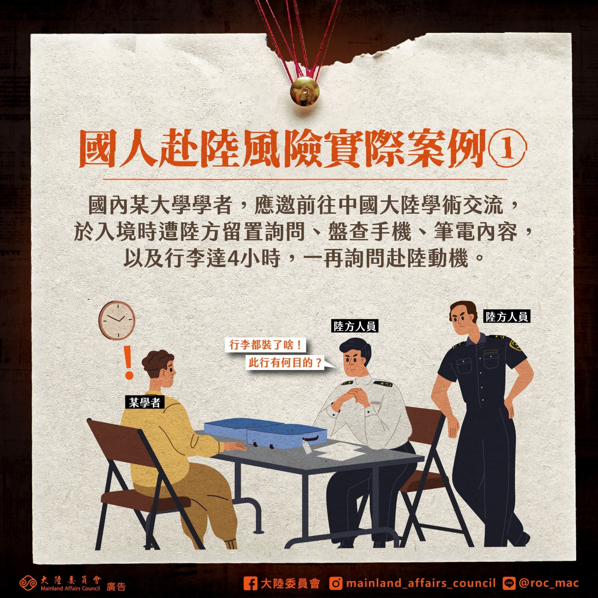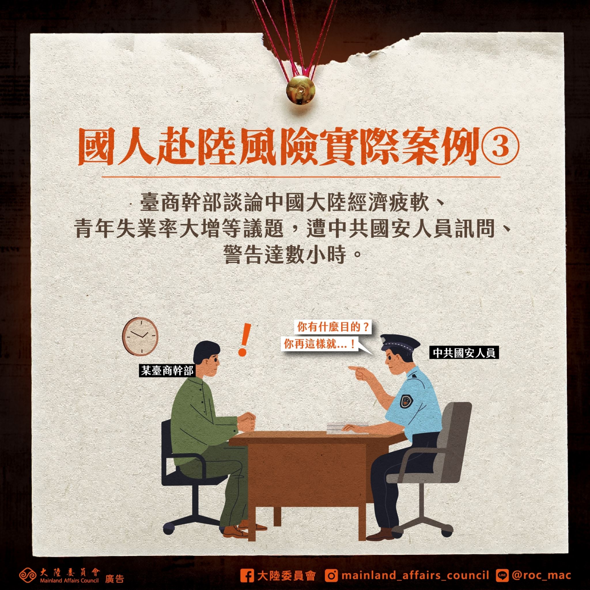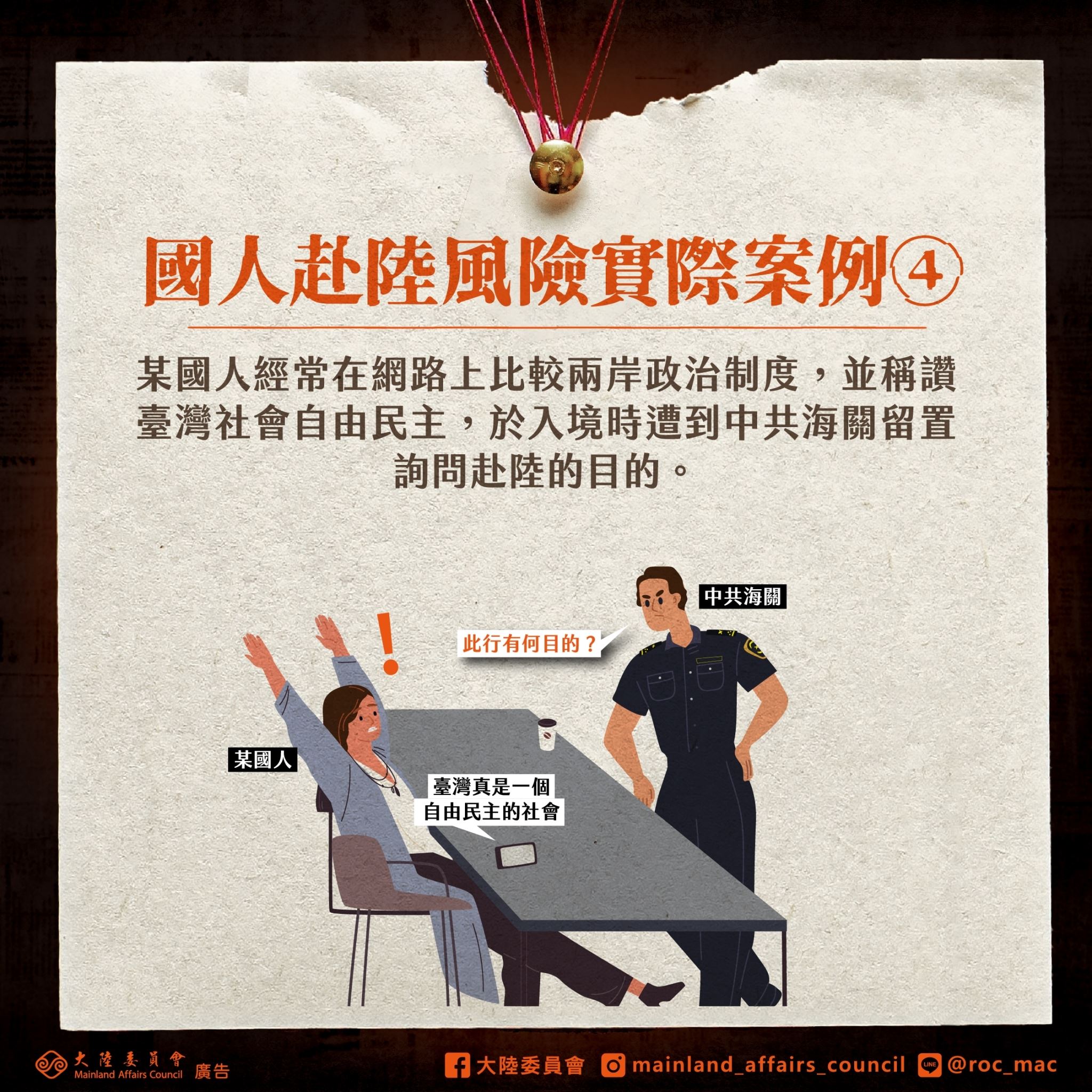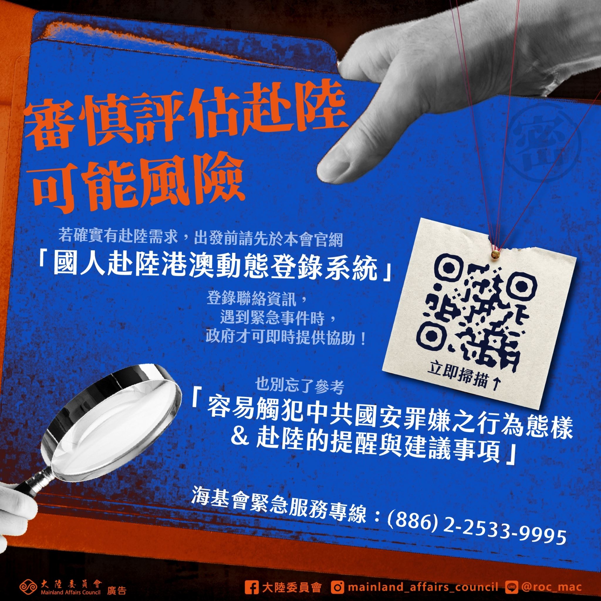 三、國人赴陸港澳風險可至大陸委員會網站/國人赴陸港澳風險專區https://www.mac.gov.tw/cp.aspx?n=16F6C9D66219D903查詢。